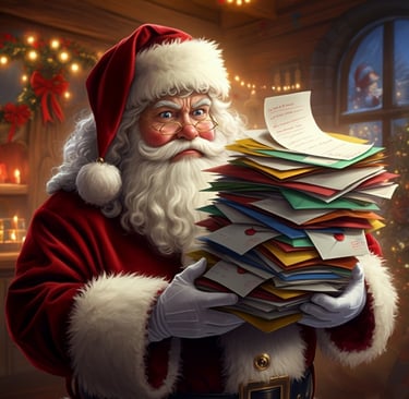 "These spoiled children will get nothing from me," Santa exclaims. He decides that he will play a little trick. "I'll call in sick."